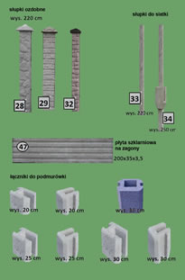 Słupki ozdobne, słupki do siatki, łączniki do podmurówki |
